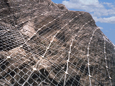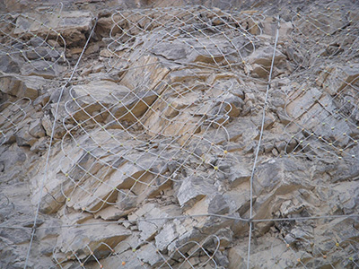 作用原理上類似于噴錨和土釘墻等面層護坡體系,但因其柔性特征能使系統(tǒng)將局部集中荷載向四周均材質(zhì):鋼絲繩網(wǎng)、普通鋼絲格柵(常稱鐵絲格柵)和TECCO高強度鋼絲格柵 勻傳遞以充分發(fā)揮整個系統(tǒng)的防護能力,即局部受載,整體作用,從而使系統(tǒng)能承受較大的荷載并降低單根錨桿的錨固力要求 。