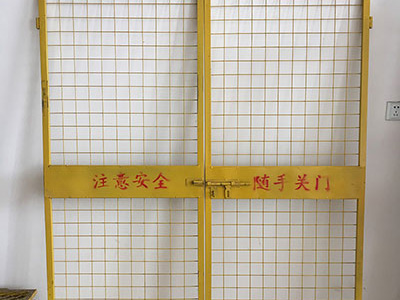 電梯井口防護(hù)網(wǎng)的開關(guān)插銷設(shè)計在外面一側(cè),從里面內(nèi)側(cè)無法開關(guān)的。