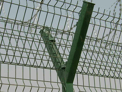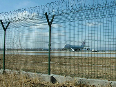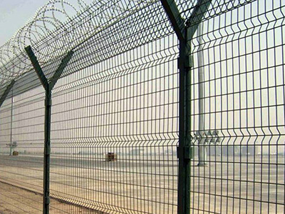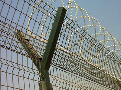 機場護欄網又稱作“Y型安全防御護網”,是由V型支架立柱加強型焊接片網,安全防盜連接件和熱鍍鋅刀片刺網組成強度和安全防御性級別很高。被廣泛應用在機場,軍事基地等高安全場所。